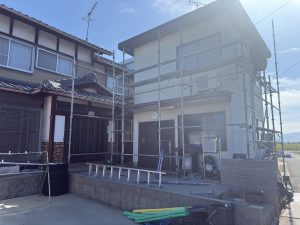 今日から現場が本格的に始まるので足場設置の確認を